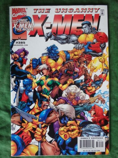 2000 Marvel comics, The Uncanny X-Men no.385, Shell Game. Comic in very good condition. Rear cover has a light stain spot. All pages tight bright and clear.